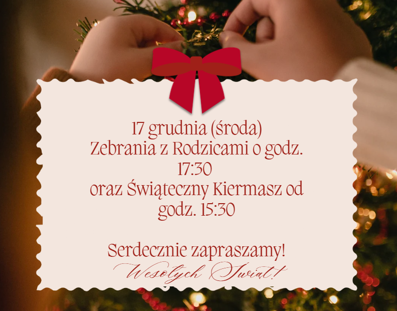 Szanowni Państwo, w dniu 17 grudnia (środa) zapraszamy na zebrania… Czytaj dalej »Zebrania z Rodzicami i Świąteczny Kiermasz